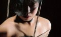 ホテルに入っていきなり全身に縄をかけられ緊縛されると、壁にはりつけにされながらのローター責めに早くも喘ぎ声を漏らし始める。